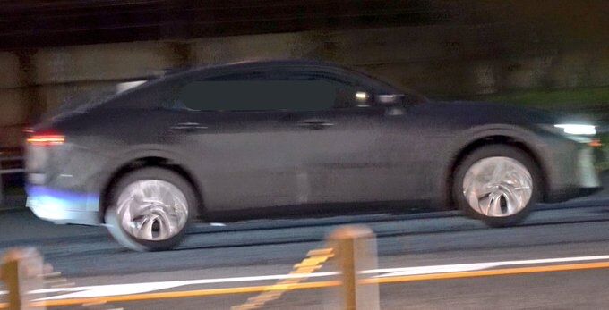 サイドビューはこのようなシルエット。これを見るにボディタイプは、従来のクラウンのようなセダンというよりはファストバックや4ドアクーペに近いデザインであることが分かります。