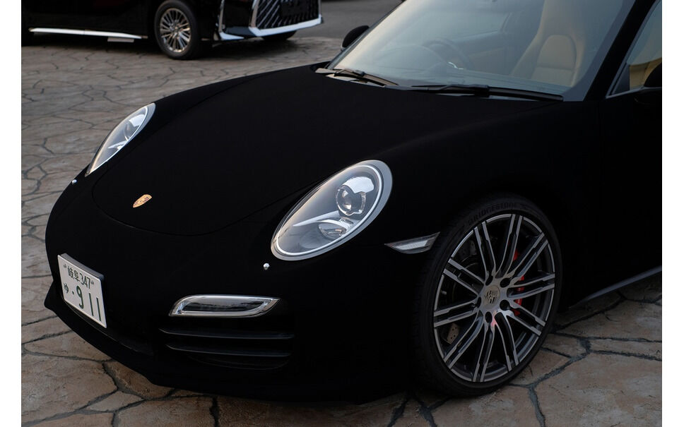 ピットワン(岐阜市)は、光陽オリエントジャパンとコラボして、ポルシェ『911』を世界一黒いと言われる塗料「真・黒色無双」を使用して全塗装を施工した。