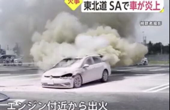 24日午前10時ごろ、埼玉県の東北自動車道上りの蓮田サービスエリアの駐車場で、「車から白い煙が出ている」と通報があった。