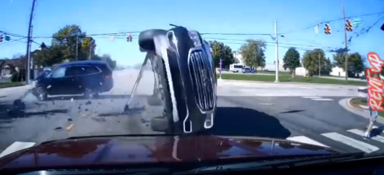 【動画】横断歩道には歩行者…そこに信号無視で交差点に突入してきた車同士が大クラッシュ!→まさかの奇跡を起してしまう