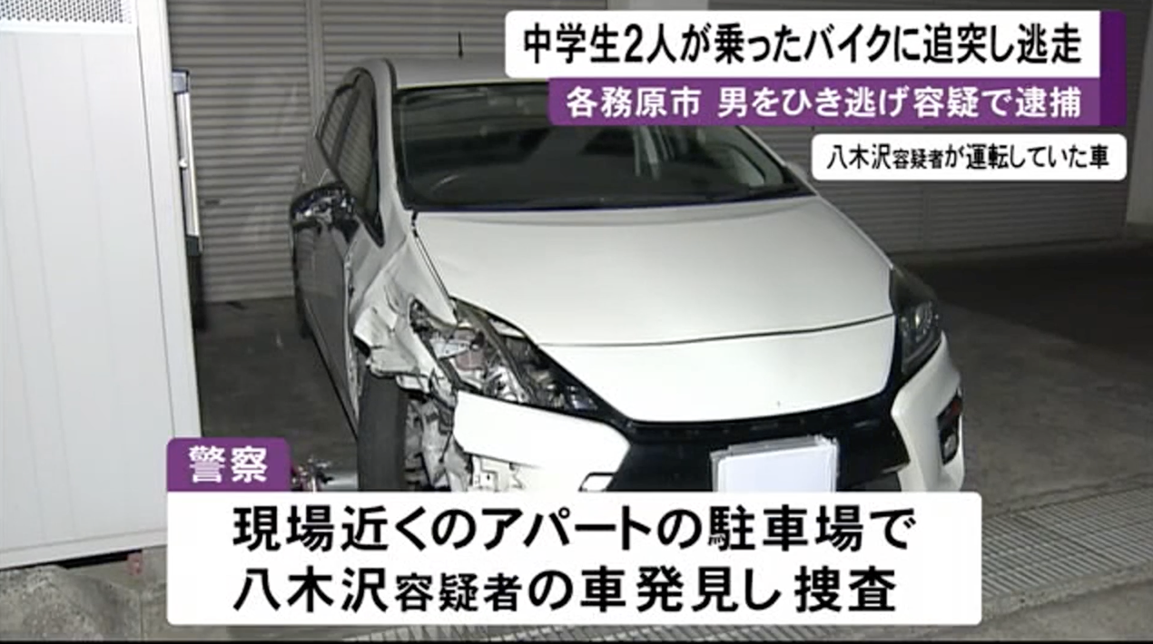 警察の調べによりますと、八木沢容疑者は28日未明、各務原市の国道21号線で乗用車を運転中、14歳の男子中学生2人が乗るバイクに追突して重傷を負わせ、そのまま逃げた疑いが持たれています。