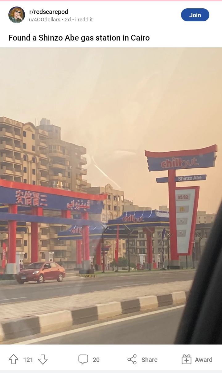 エジプトで「安倍晋三」という名前のガソリンスタンドが発見されるwwwwwwww