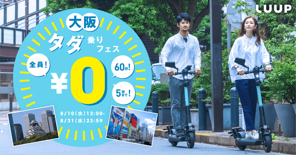 シェアサービスのLuup、帰省・旅行時の利用を見込み電動キックボードを無料貸し出しキャンペーンを大阪で実施