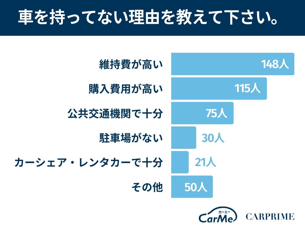 車を持っていない人に理由を聞いたところ、最も多かったのは「維持費が高い」で49.3%と約半数が答えた。