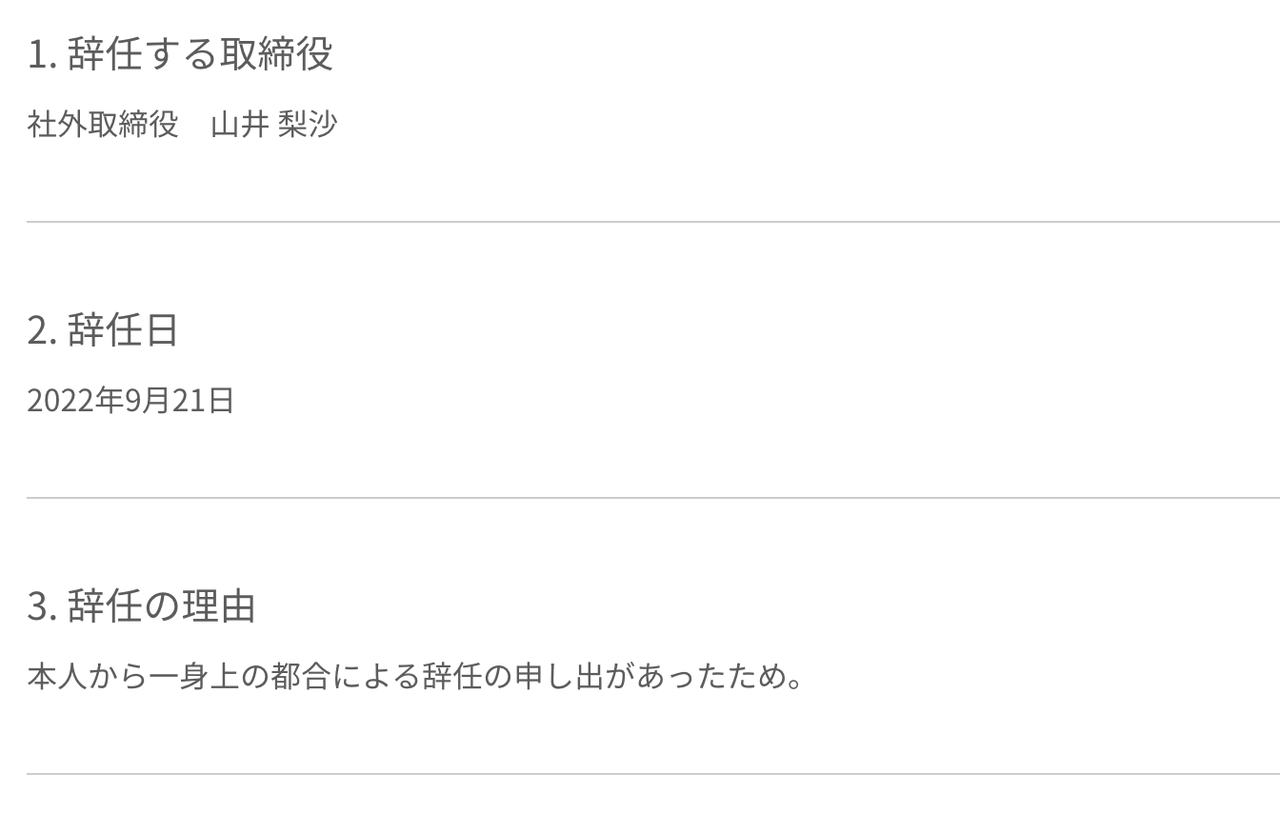 スノーピーク・山井梨沙氏、スズキの社外取締役を辞任 2022/9/26 バイク速報 スズキは、社外取締役を務めていた山井梨沙氏が今月21日付けで辞任したと発表した。辞任理由は「本人から一身上の都合による辞任の申し出があったため」としている。 https://www.suzuki.co.jp/release/d/2022/0921/ Source: バイク速報