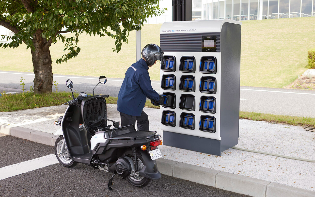 本田技研工業は10月25日、東京都の支援する「EVバイクバッテリシェアサービス」において、同社が販売を開始したバッテリ交換ステーション「Honda Power Pack Exchanger e:(パワーパック エクスチェンジャー イー)」の国内第1号機が稼働開始したと発表した。