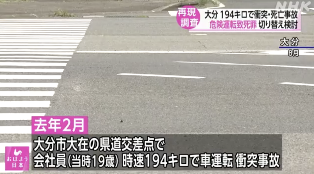 捜査関係者によりますと、大分地方検察庁は遺族の要望などを受けて危険運転致死罪に切り替えられるか検討を始め、16日夜は事故が起きた時間帯に現場付近の通行を規制したうえで、警察と合同で当時の状況を再現し改めて詳しく調べました。