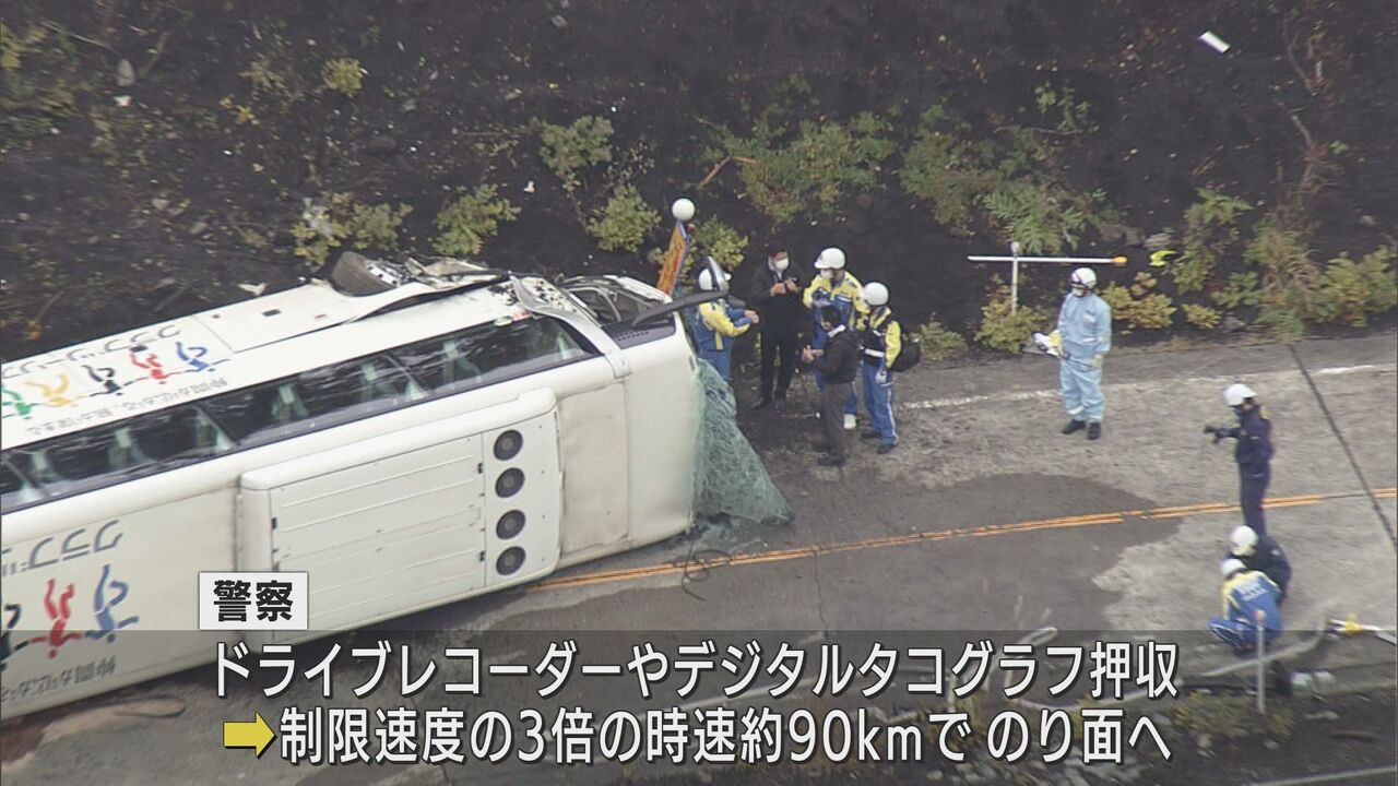 警察のこれまでの調べで、バスは制限速度の制限速度の3倍にあたる時速およそ90キロでのり面に乗り上げ横転したことがわかっています。