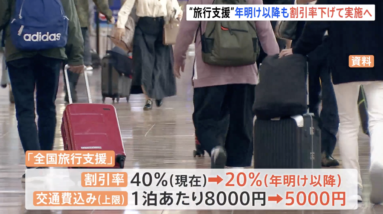 来月下旬まで実施される予定の「全国旅行支援」について、観光庁は年明け以降も割引率を引き下げて実施すると発表しました。