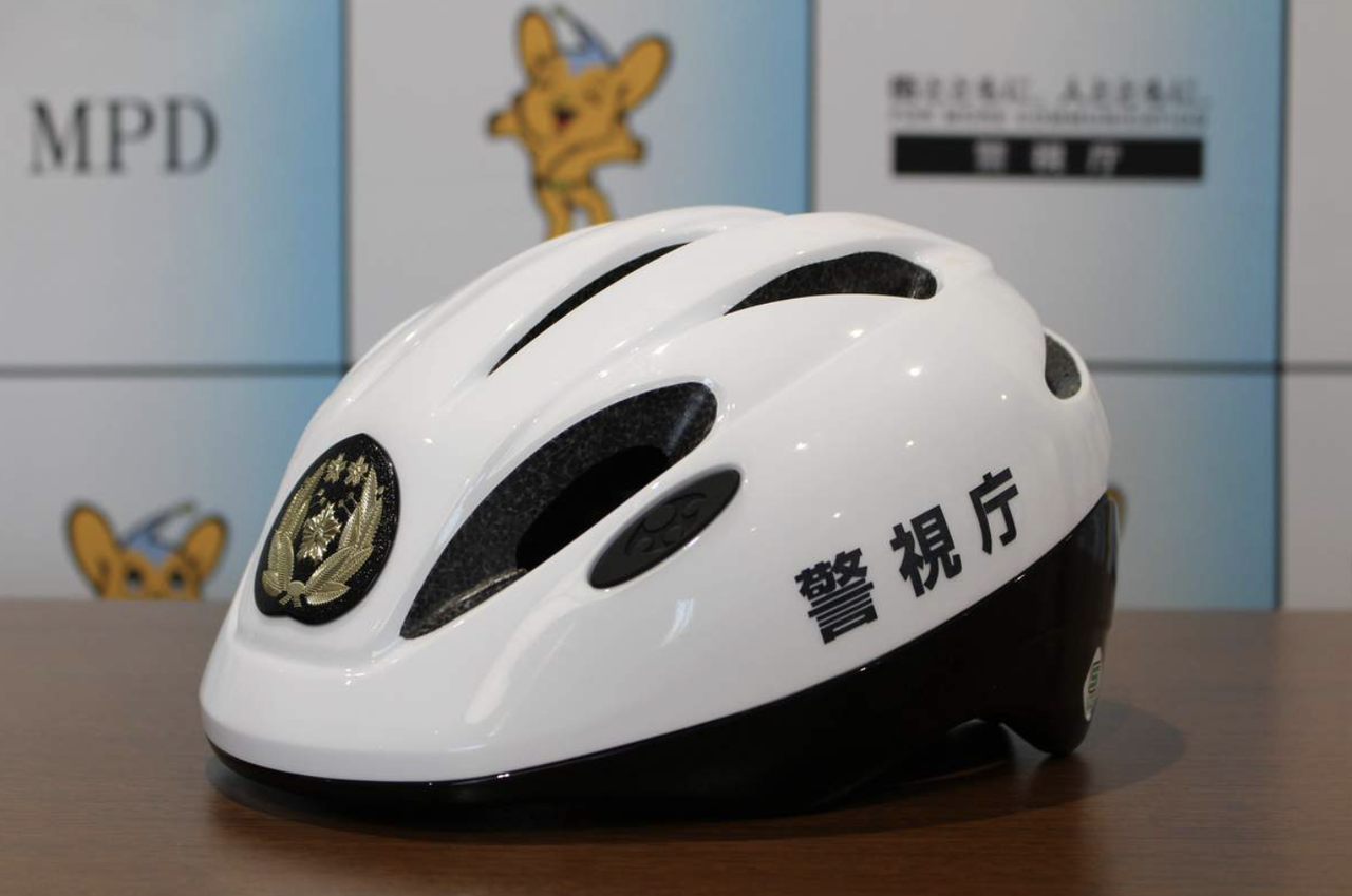 新しく警視庁に導入されるヘルメットは、白色で、正面に警察の記章がついている。左右の側面には「警視庁」、後ろにも「POLICE」と記載。警視庁では約1万4800個を準備し、今年度中に交番などで制服で勤務にあたる地域警察官全員に貸与。来年4月1日から自転車に乗る際に着用する。