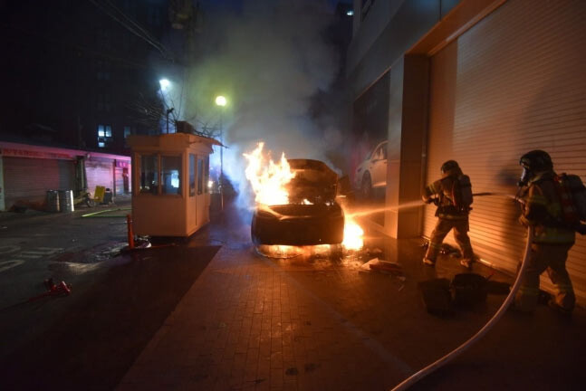 火災が発生した車は午後1時30分ごろ京畿道南楊州市内を走行中、「電力減少」「走行不可」のメッセージが突然点灯しエンジンが止まった。所有者が保険会社を通じて直接レッカー車を呼び車が聖水洞のサービスセンターに到着したのは午後4時18分ごろだが、サービスセンターは休日には営業しないため担当者や作業員などは誰もいなかった。午後4時50分に車の中と外から高温で水が沸騰するかのような音が聞こえるようになり、4時57分ごろには車体の下から火花が飛び散り始めた。直後に1回目の金属爆発音が聞こえ、所有者は午後5時2分に自ら119番通報を行った。午後5時20分に警察と消防車が到着した直後に2回目の爆発音が聞こえた。