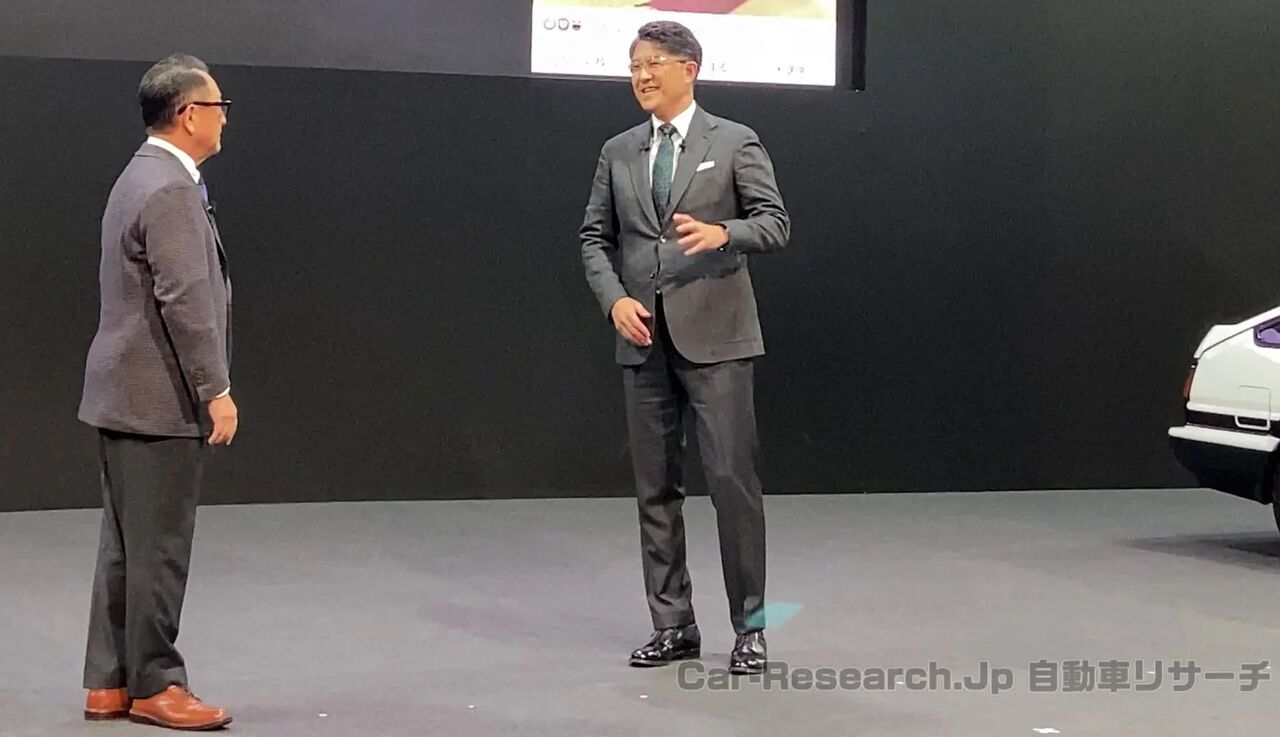 佐藤氏が、現社長の章男氏から新社長として打診されたのは、2022年12月のタイ25時間耐久レースの最中であったという。その翌月、佐藤氏の新社長への内定がほぼ決まっていたと思われる状況で迎えた東京オートサロン2023で、「TOYOTA GAZOO Racing」の記者会見が行われた。そのプレゼンテーションは、前半を章男氏が担当し、途中で佐藤氏へバトンタッチするという流れ。このなかで、