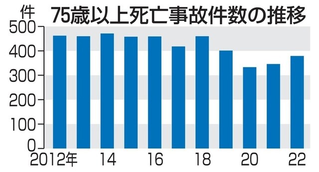2022年に全国で起きた75歳以上のドライバーによる車やバイクの交通死亡事故は前年に比べ33件増の379件で、2年連続の増加となったことが2日、警察庁の統計で分かった。1947~49年生まれの「団塊世代」が75歳以上となり始めた影響とみられ、増加傾向が続く恐れもある。