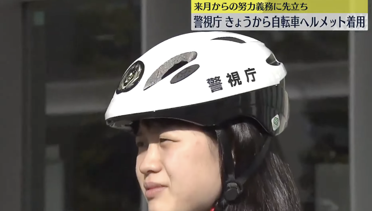 来月からすべての自転車利用者にヘルメット着用の努力義務が課されるのに先立ち、警視庁では22日から警察官がヘルメットの着用を始めました。