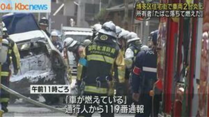 福岡市で車両2台炎上 「たばこが落ちて燃えた」