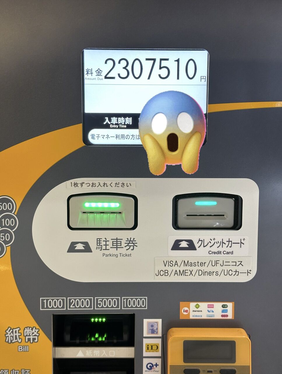コインパーキングの精算機に表示された写真をアップし、顔が青ざめる絵文字を添えた。駐車場の場所や駐車時間は不明だが、230万円を超える高額請求に絶句した様子。