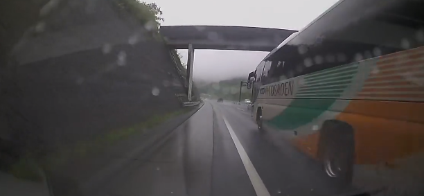 追越車線の車と張り合って合流地点でも並走するとさでん交通の高速バス