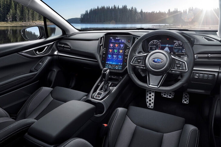 今回登場したレヴォーグ スマートエディションは、「GT」「GT EX」グレードをベースに、11.6インチセンターインフォメーションディスプレイ&インフォテインメントシステム(GT EXは標準装備)や、スポーティーさと上質感を演出するブラック塗装+切削光輝の18インチアルミホイール、高触感革の本革巻きステアリングホイールといったブラックを基調とした内外装アイテムを採用しながら、価格を抑えたという特別仕様車である。