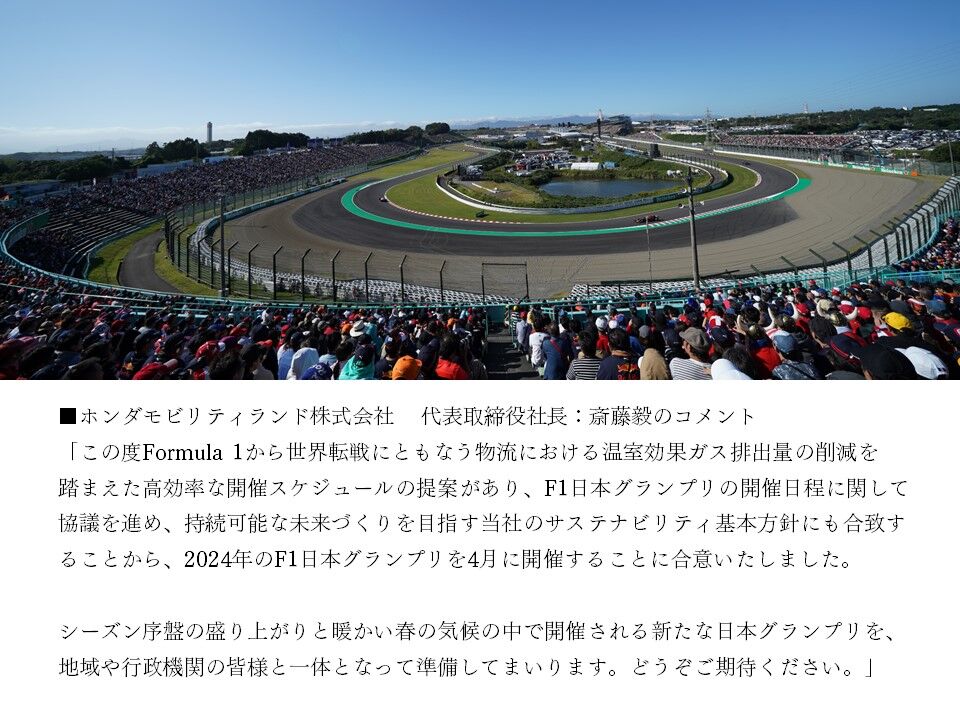 鈴鹿サーキットにて2024年に開催される「FIA F1 世界選手権シリーズ 日本グランプリレース」の日程が、4月5日(金)~7日(日)に決定いたしました。