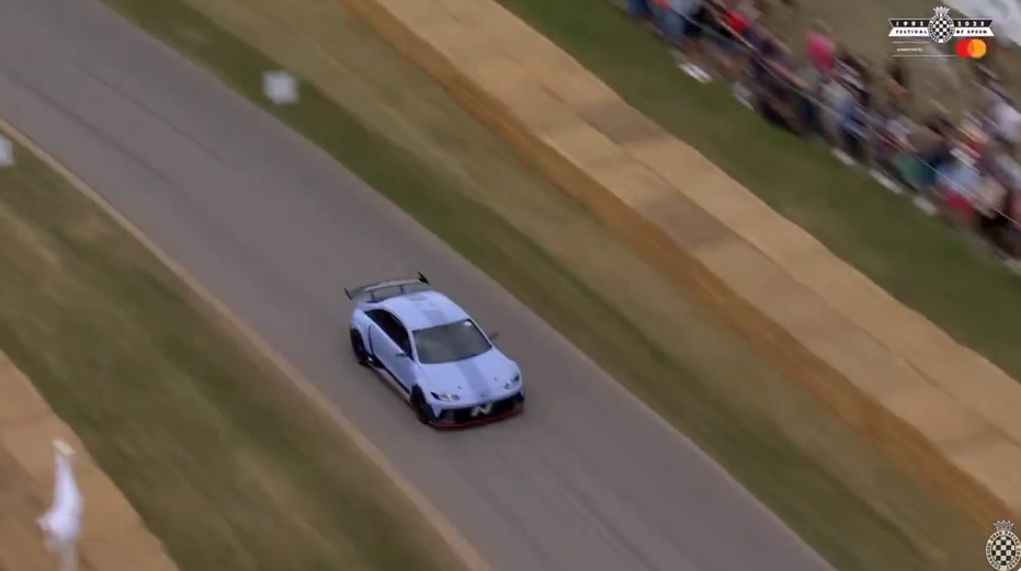 Hyundai Iconiq 6 absolutely YEETS itself through the hay bales at Goodwood #FOS 😂 pic.twitter.com/wlCgVkgpGQ