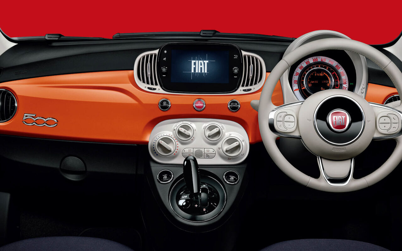 内装の特別装備として、ブラックの上質な素材とやわらかなウェーブデザインで織り込むことでスポーティ感を表現した、500ロゴの刺繍が入ったシックなフロアマットを装備しています。