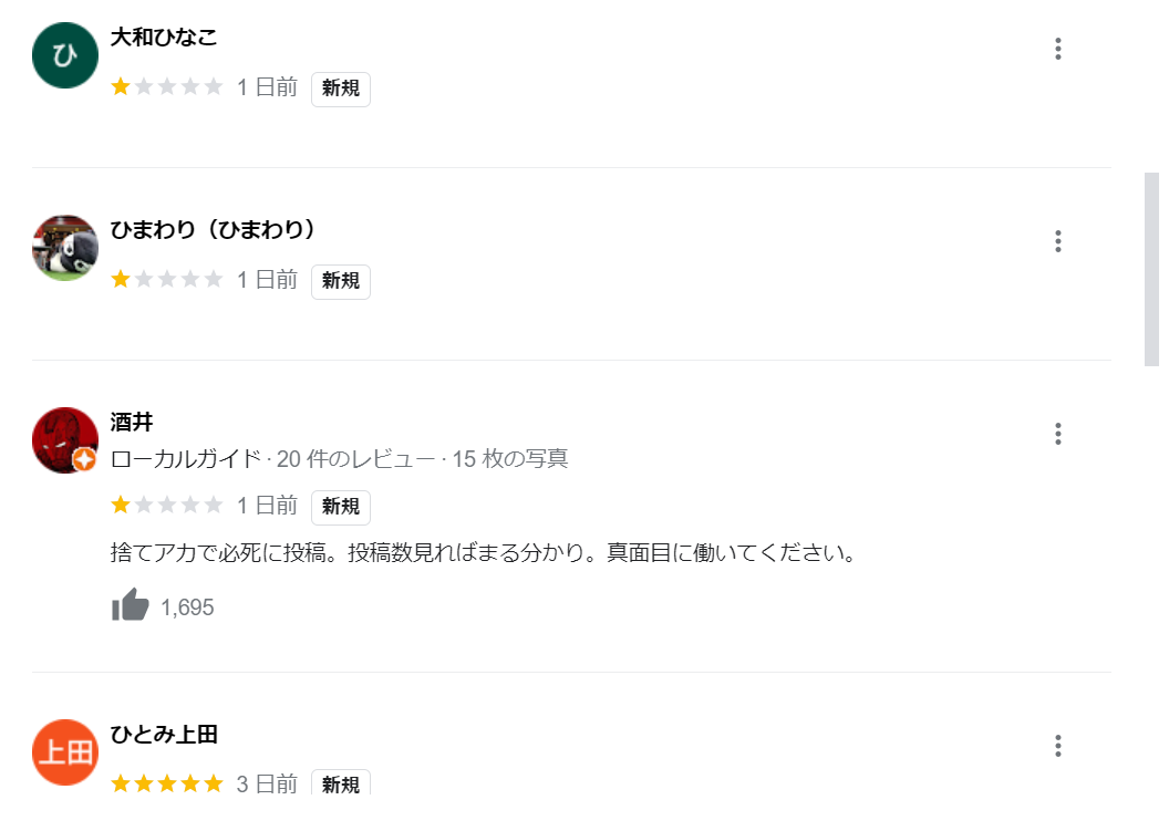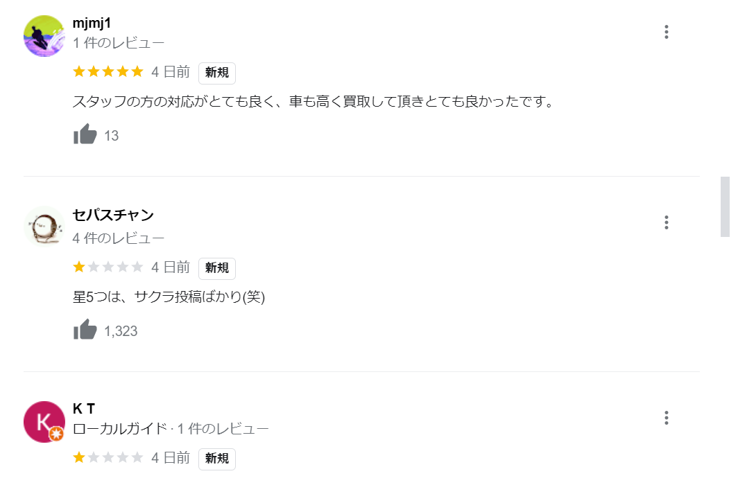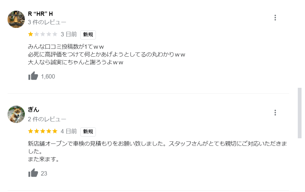 Google mapの口コミの工作と言うかサクラというか・・・。