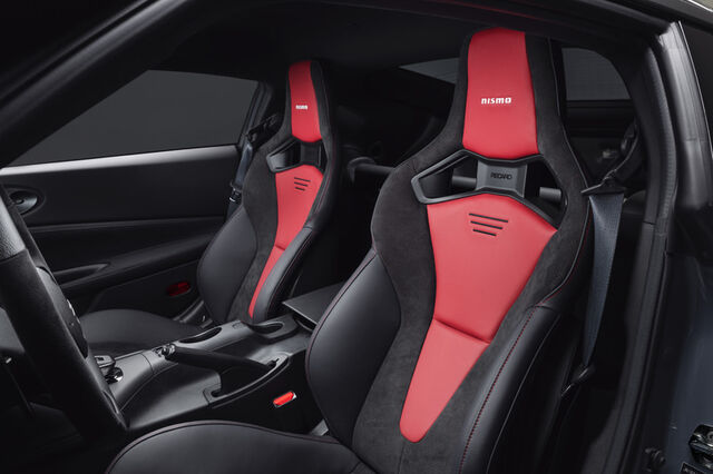 ホイールは、NISMO専用の軽量グロスブラックとなるRAYS製19インチホイールを装着。Z Performanceの19インチホイールよりも0.5インチ幅が広くなり、フロント幅10インチ、リア幅10.5インチ、先進的な構造によりNISMO専用ホイールは軽量に仕上げられたとしている。