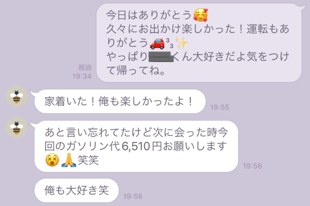 ガソリン代請求したあとに「大好き」とか言われても冷める😅