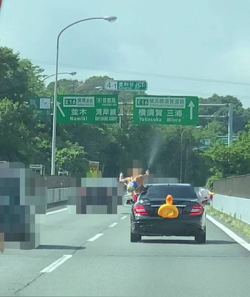 そのうえで窓枠に腰掛け、身を乗り出して水鉄砲で水を放つなどしたそう昨年8月に横浜市内の高速道路でナンバープレートがアヒルの浮輪に隠れた車が走行し、窓枠に腰掛けた男が身を乗り出して水鉄砲で水を放つなどした騒動があり、神奈川県警高速隊は12日、道路運送車両法違反や道交法違反の疑いで、いずれも19歳の男3人を書類送検した。