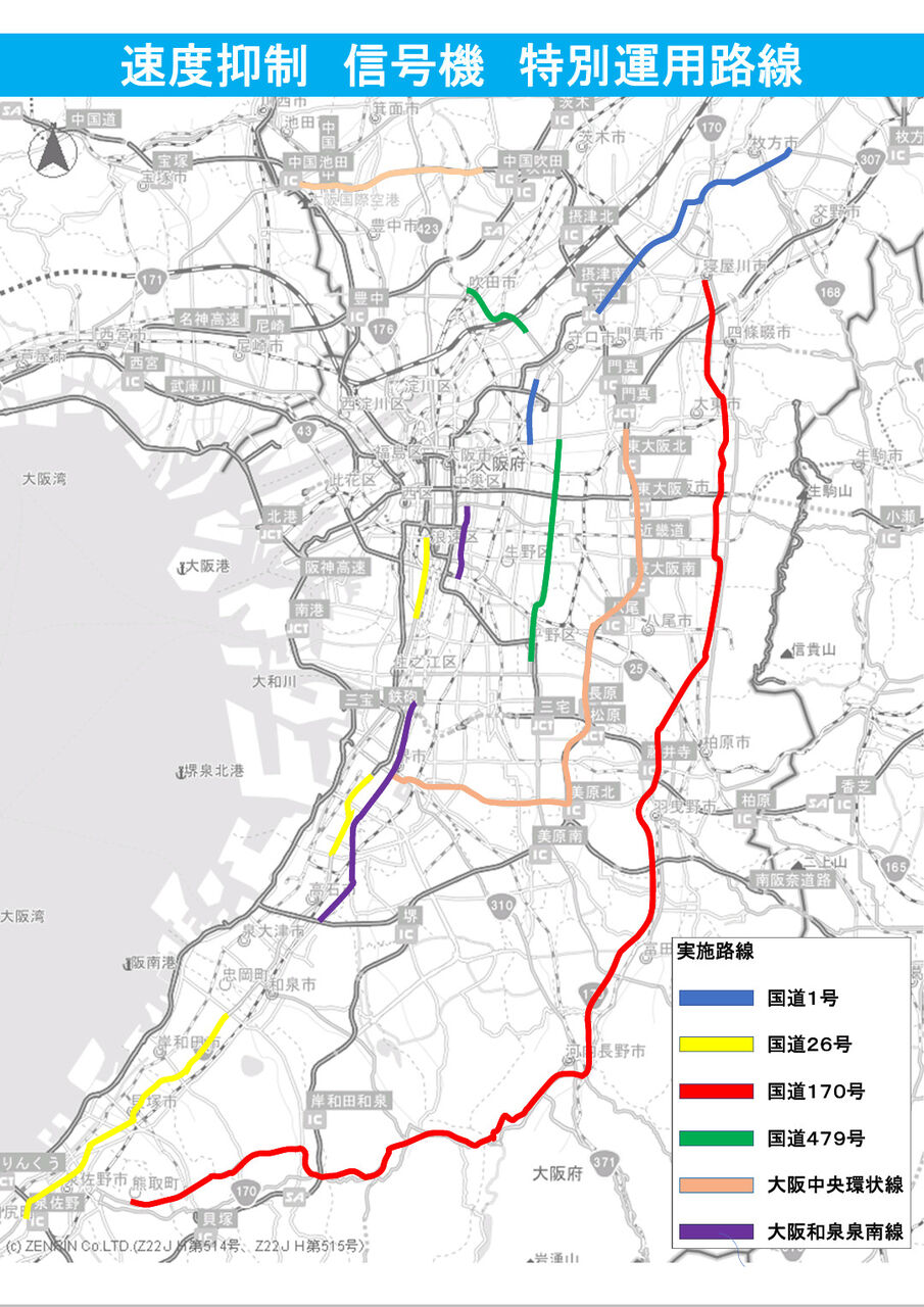 導入されるのは、国道1号▽国道26号▽国道170号▽国道479号▽府道大阪中央環状線▽府道大阪和泉泉南線-の6路線。平日より交通量が少ない土日と祝日の午前9時ごろから午後5時ごろまでが対象の時間帯となる。