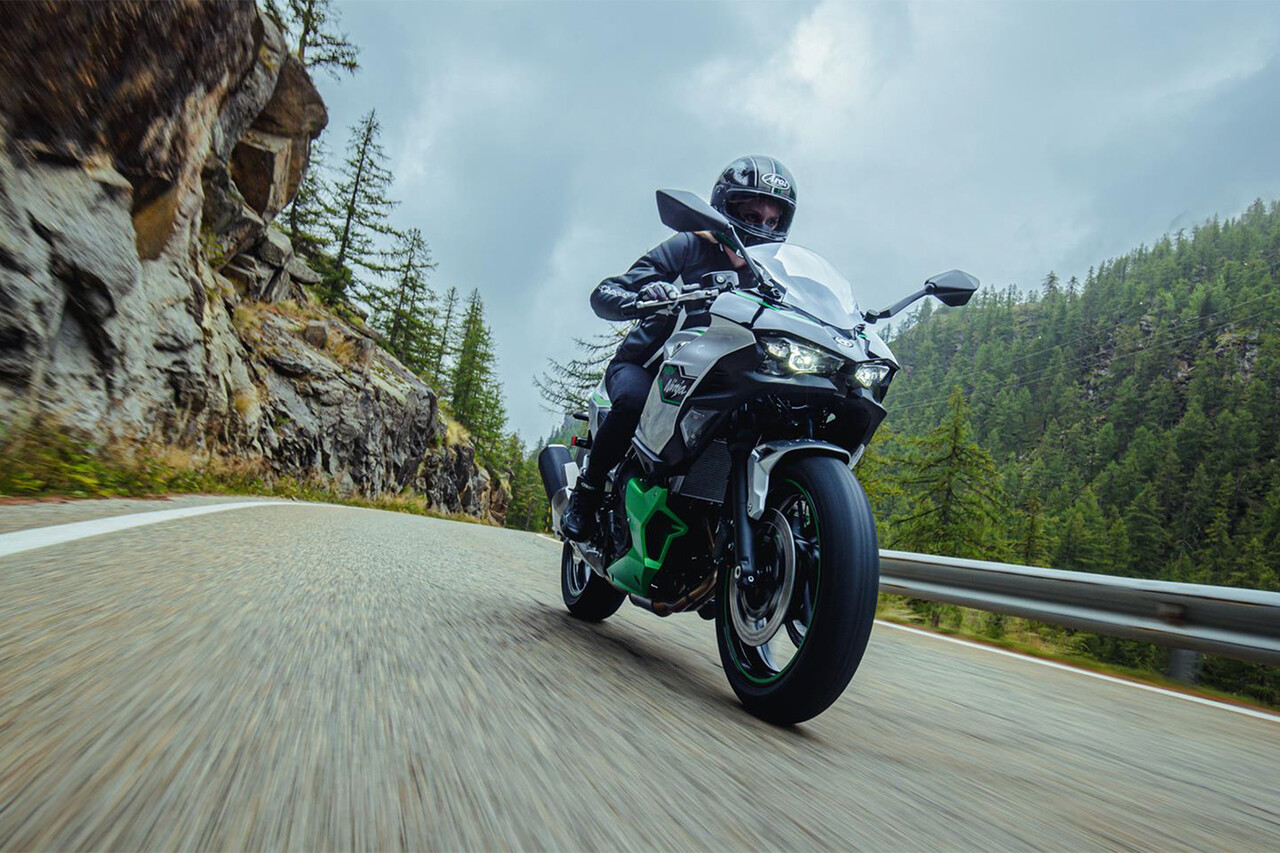 Ninja 7 HybridはSPORT-HYBRID、ECO-HYBRID、EVの3つのライディングモードに切り替えが可能。50ccクラス並の燃費性能が実現されており、ボタンシフトによるスポーツライディングも可能となっている。
