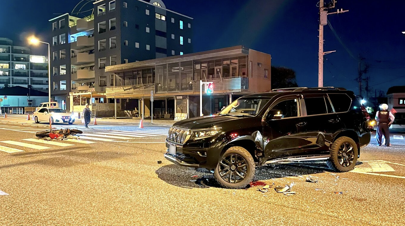 きのう午後10時40分すぎ、茅ヶ崎市中海岸の国道で「オートバイと乗用車が衝突した」と乗用車を運転していた男性から警察に通報がありました。