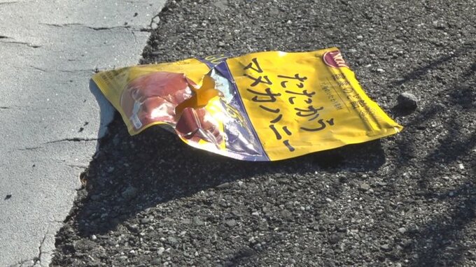 女性にけがはありませんでしたが、原付バイクにかけてあった手提げ袋に入っていた飴が食い荒らされていました。