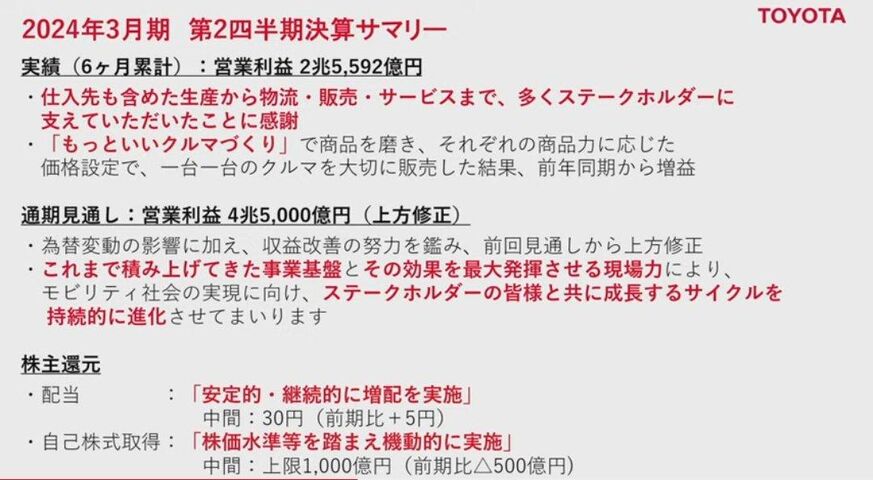 トヨタは年間営業利益を更に修正 期初目標の2兆円から4兆5000億円に