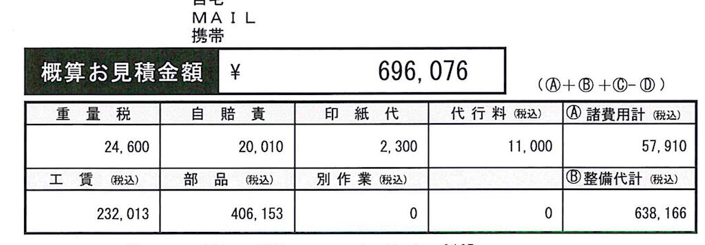 入庫前に勧められたバッテリーの交換やエアコンの清掃などなど費用がかさみ驚きの見積もりとなってしまいました。