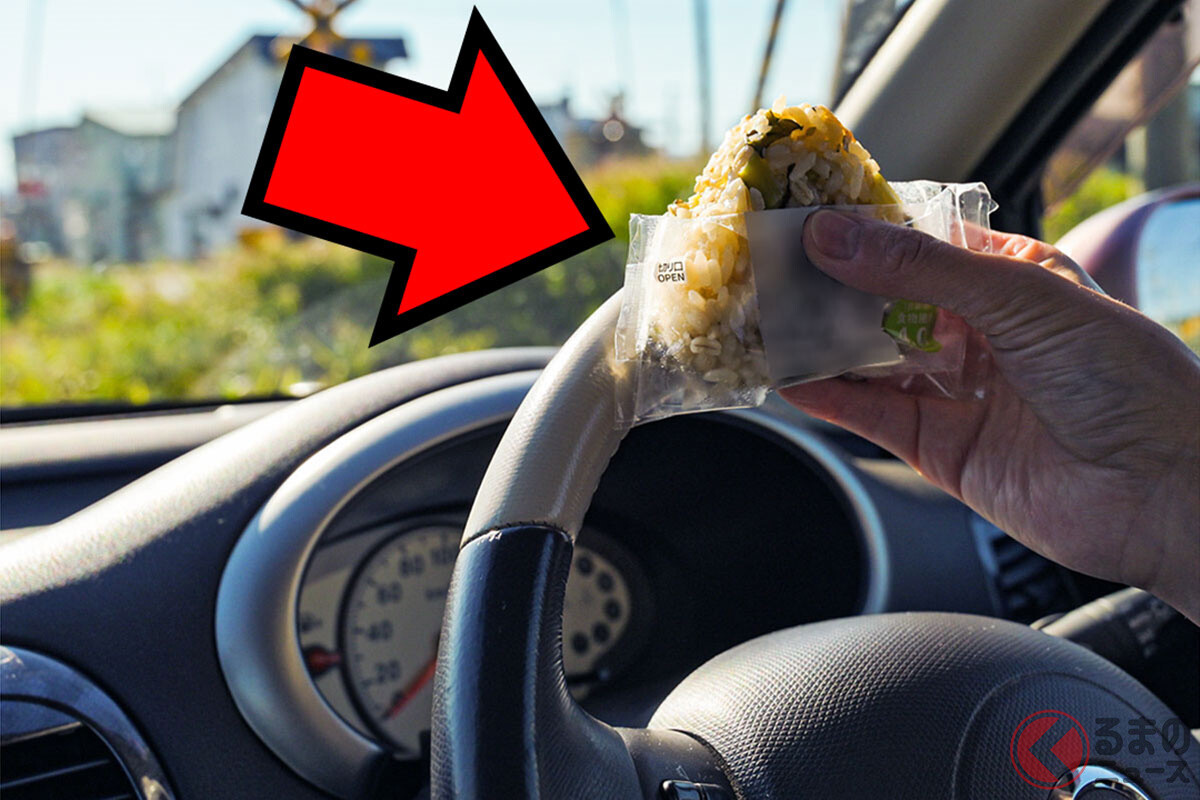 なかでもドライバーがついやってしまいがちなのが、走行中に片手でハンドルを握りながら、もう片方の手で飲み物を飲んだり、おにぎりなどを食べたりといった行為です。