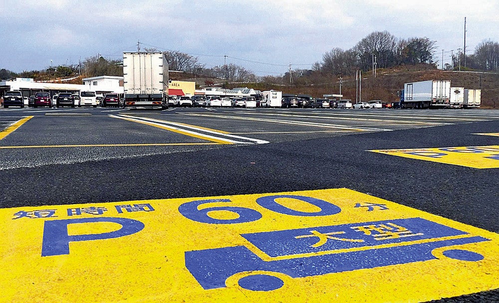 西日本高速道路は山陽自動車道上り線の吉備サービスエリア(SA、岡山市北区)で、大型車の駐車時間を1時間以内にとどめてもらう「短時間限定駐車マス」を5台分つくり、実証実験を始めた。SAやパーキングエリア(PA)は夜間、大型車用の駐車スペースが満車でドライバーが休憩できない問題が常態化しており、実験結果を解決策につなげたい考えだ。(竹上史朗)