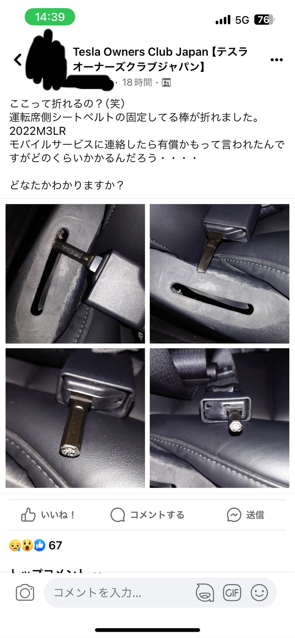 テスラのシートベルトついてる意味ない!— けなしまもる (@shaved_pus) January 17, 2024