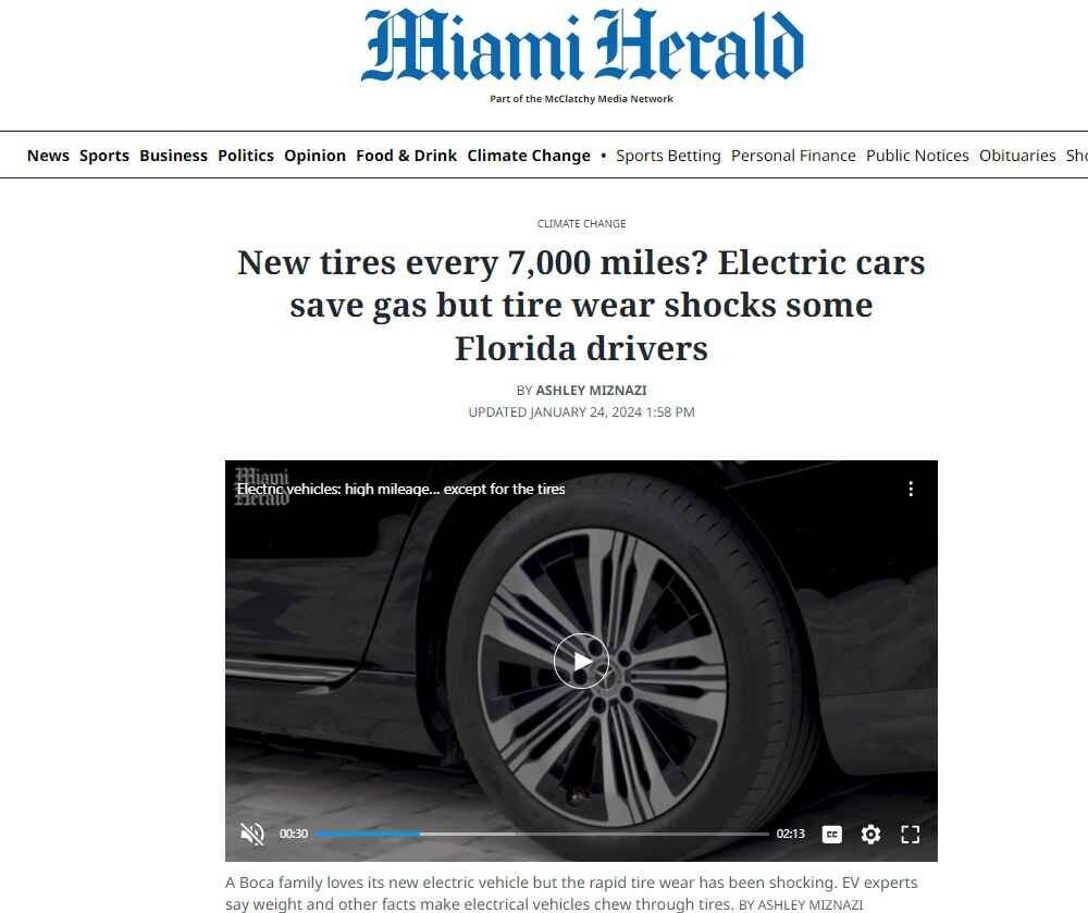 電気自動車(EV)に関してまた一つ課題が浮上した。タイヤの摩耗がガソリン車に比べて4~5倍だと米紙が報じ、
