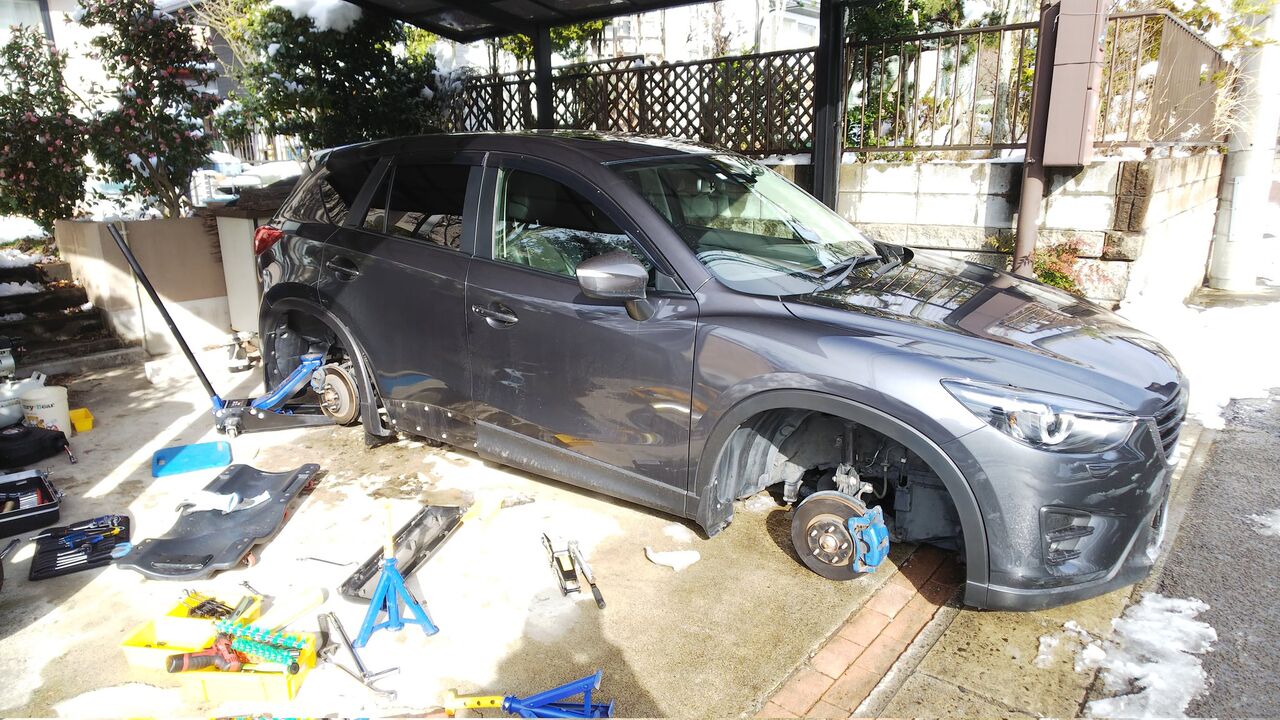 クルマの下には潜ってなかったので一切怪我しなかったのは不幸中の幸い…