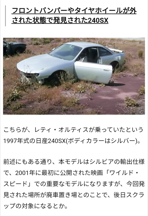 『ワイルド・スピード』に登場したシルビア(240SX)、変わり果てた姿で発見される… 2024/2/29 ゆめ痛 -NEWS ALERT- 1:名無し:2024/02/28(水) 17:50:29.02 ID:PDP5v4Cv0.net BE:643485443-PLT(15000) ソース https://creative311.com/?p=157739 続きを読む Source: ゆめ痛 -NEWS ALERT-