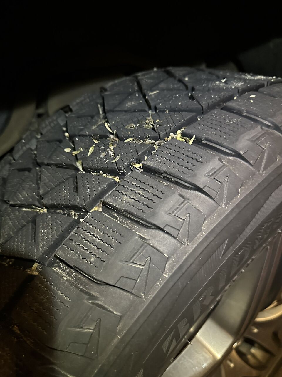 雪道動画を出してるせいかスタッドレスタイヤに何かのカス?をばら撒く陰湿さ