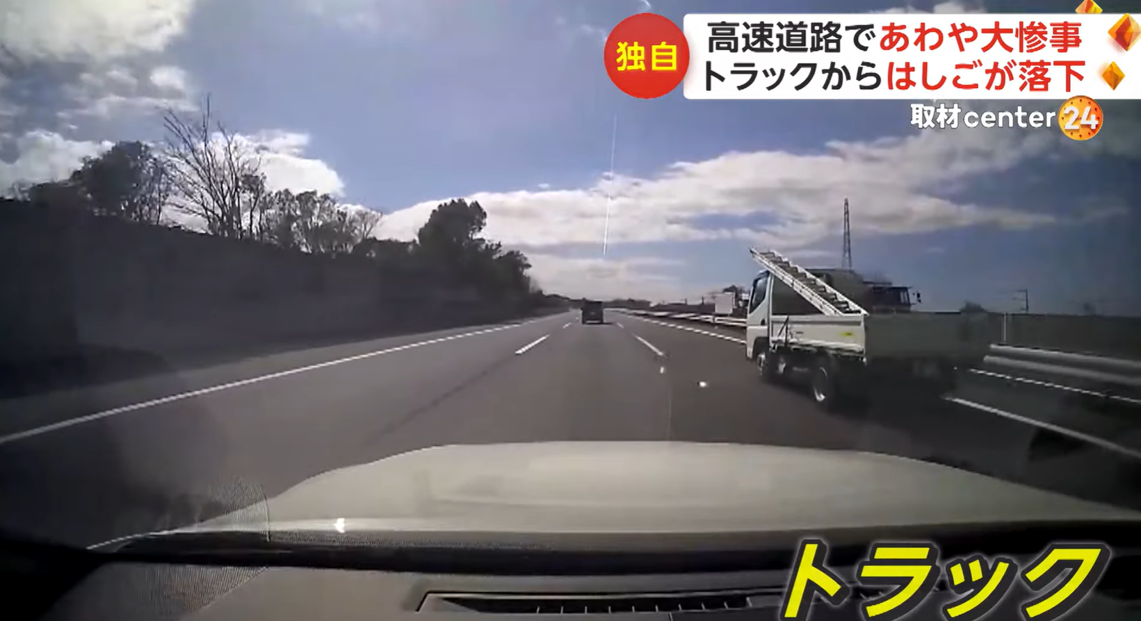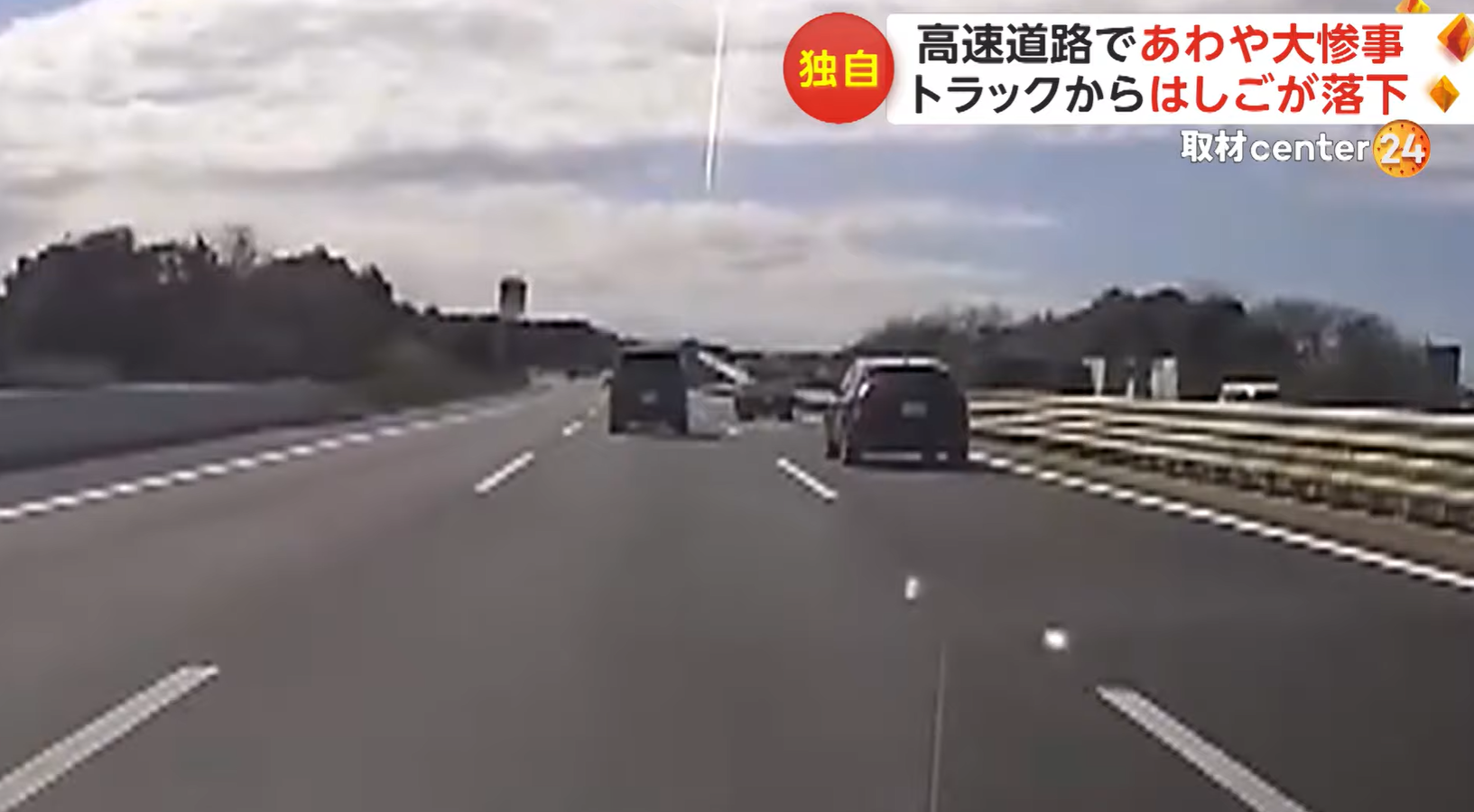 【茨城】高速道路で宙を舞う“はしご”の瞬間映像 あわや大惨事