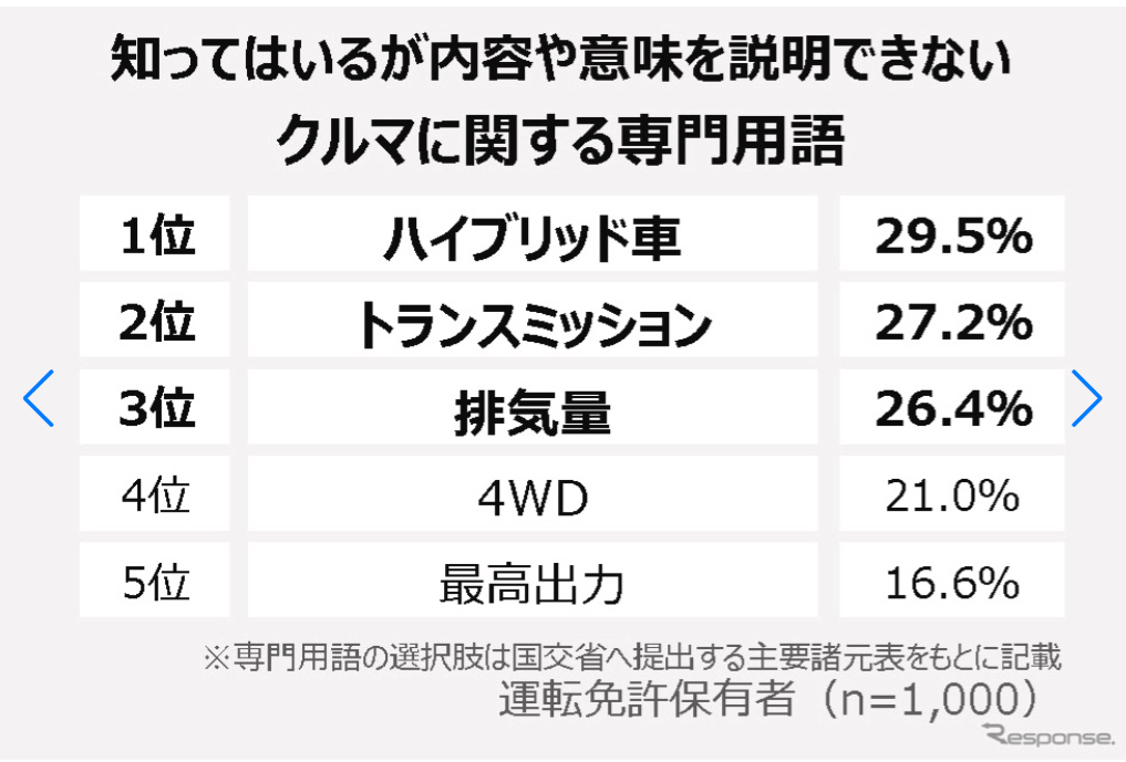 意味不明トップは「ハイブリッド車」—クルマ専門用語、理解せず購入が多数https://t.co/jfMooNPQzH#ホンダ #WRV #ハイブリッドカー pic.twitter.com/Ku5cToEltc