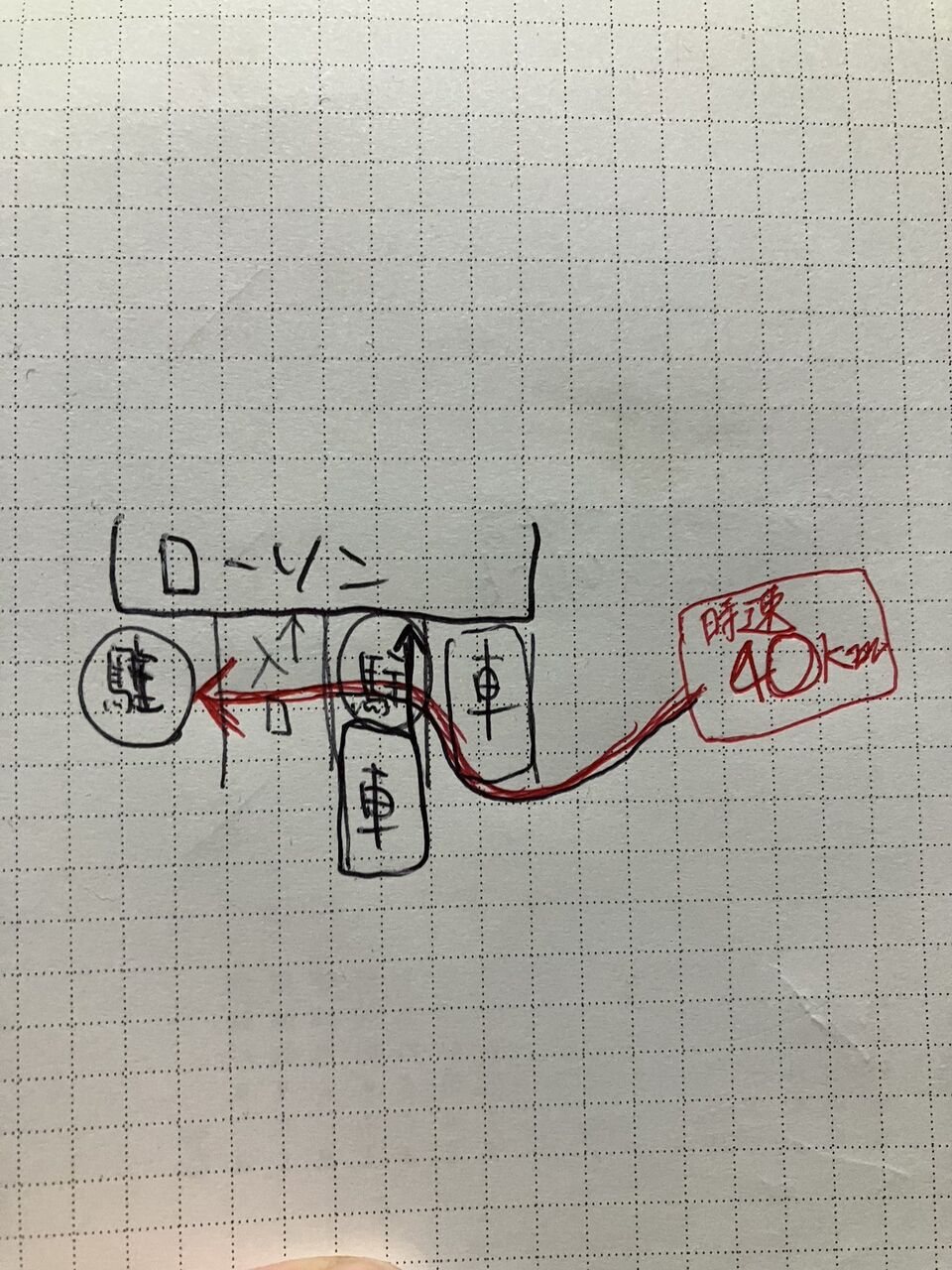 この人が猛スピードで図のように突進してきた。(下手ですみません)