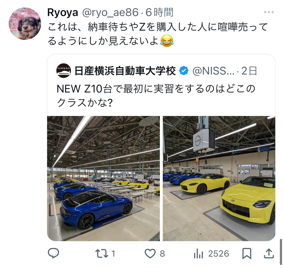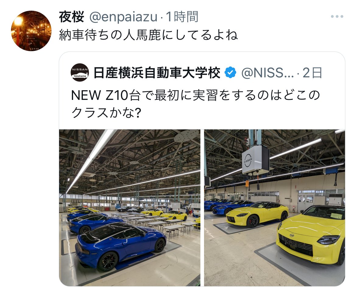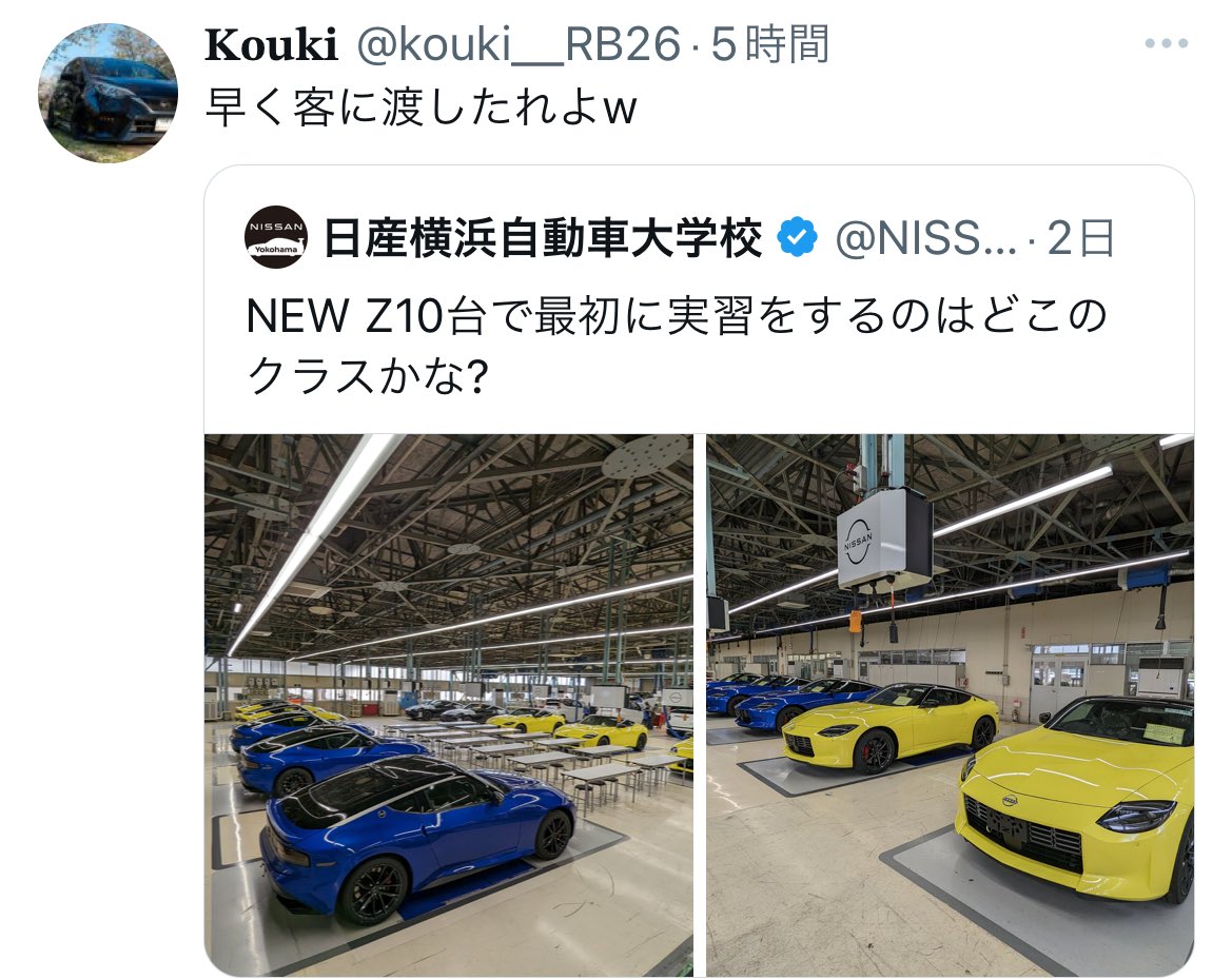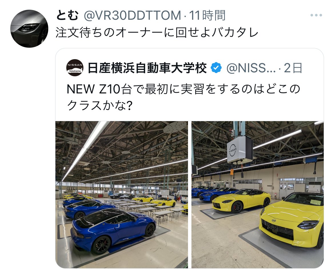 日産横浜自動車大学校「新型フェアレディZ 10台入りました!」→ X民「注文待ちのオーナーに回せ!」→ 実は「〇〇車」だった…