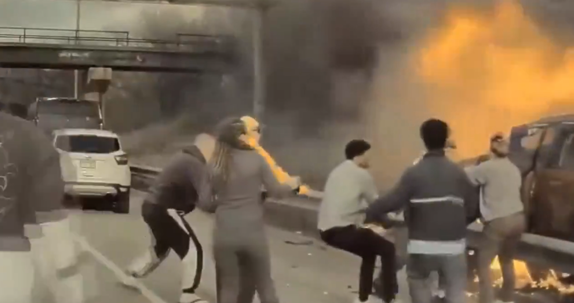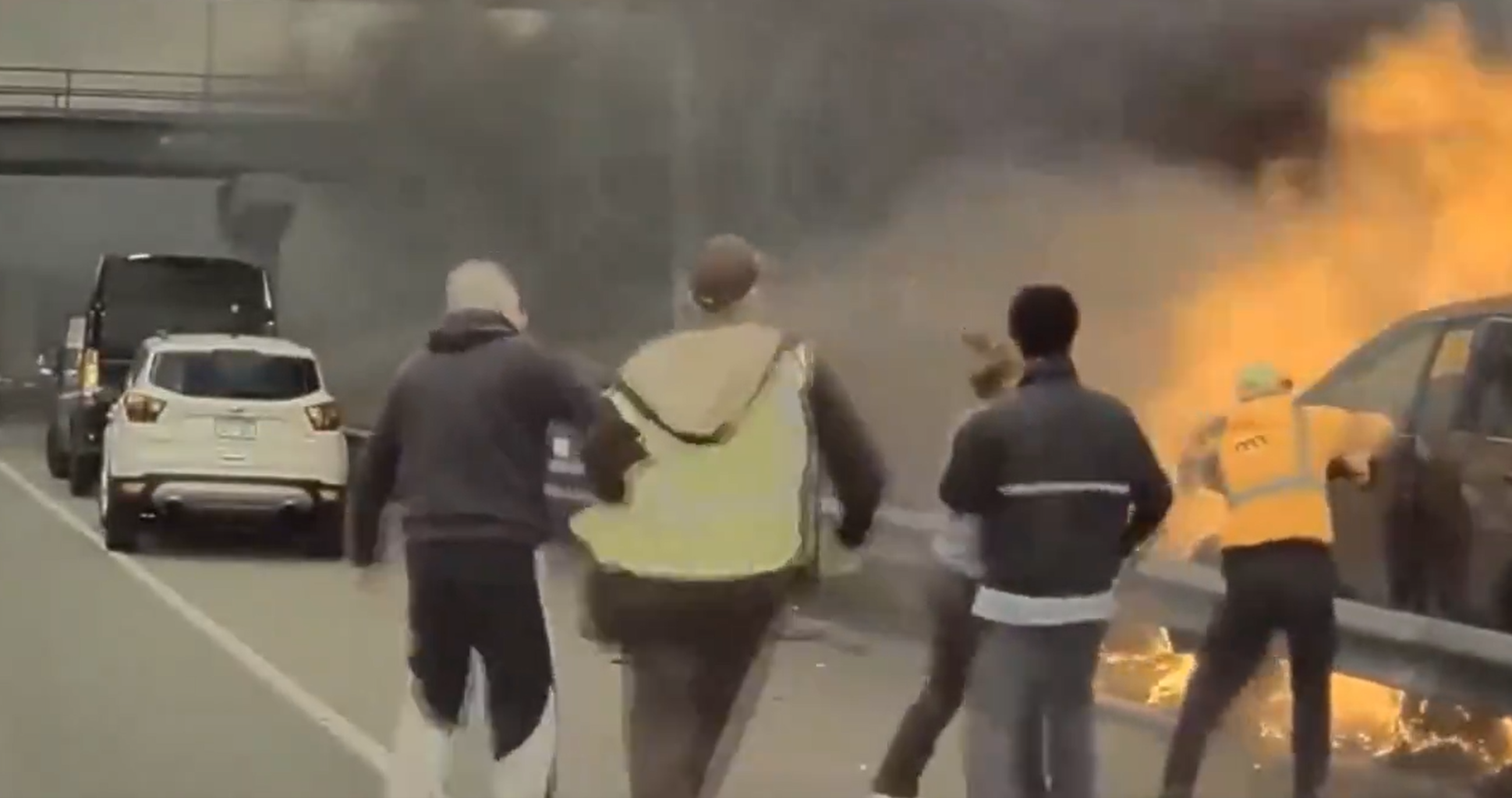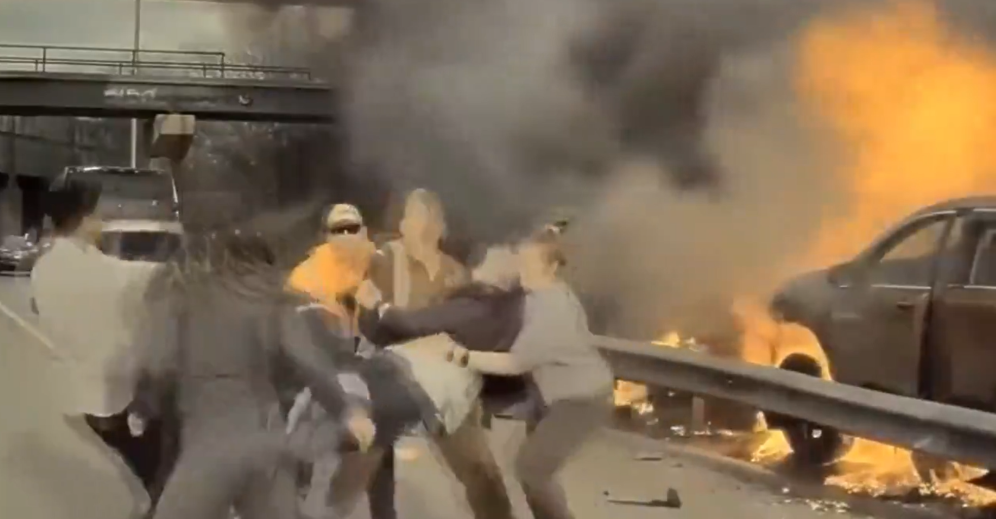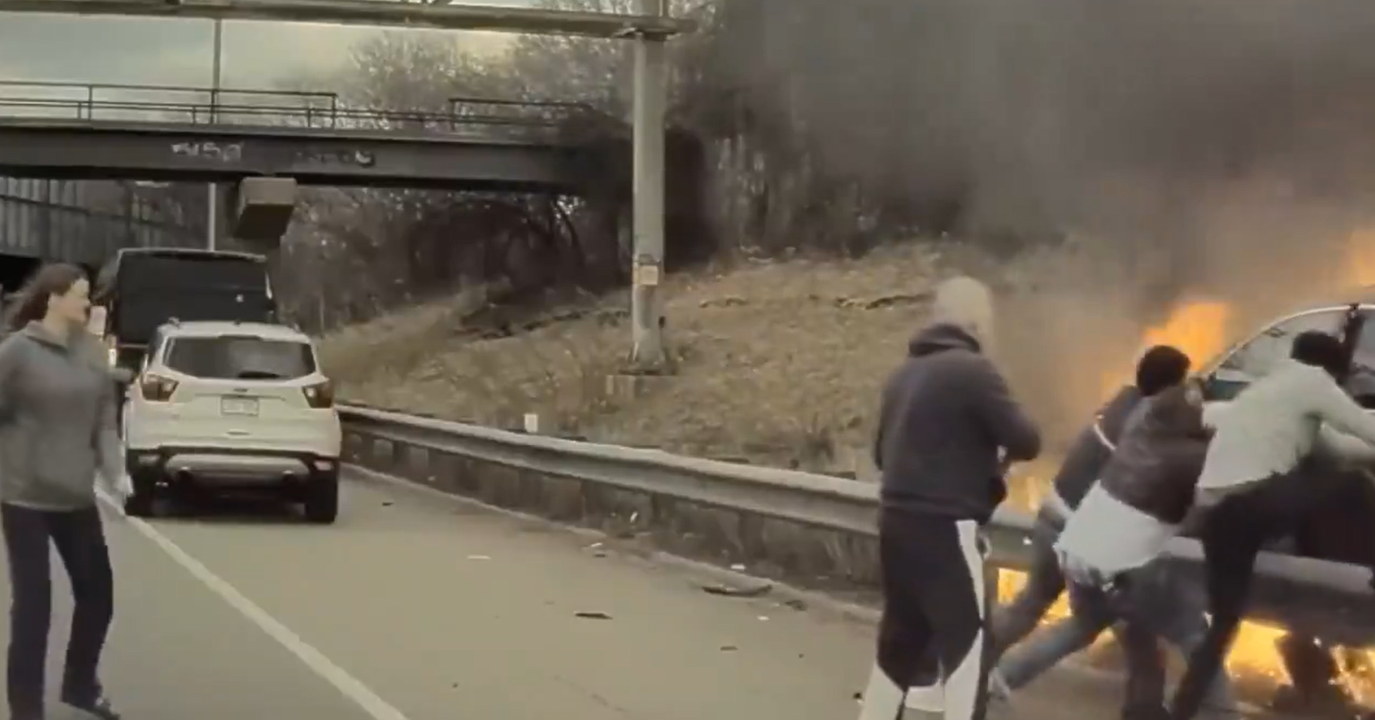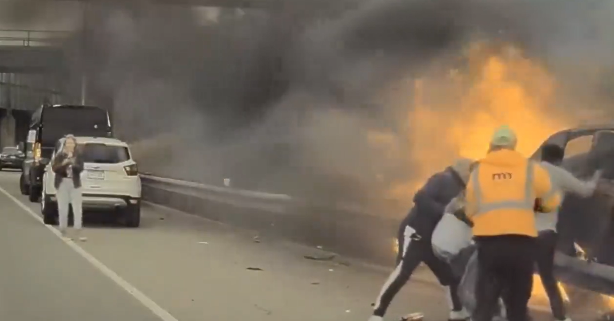 NEW: A group of Good Samaritans save a driver in Minnesota from his burning car after he got in a crash on the I-94 highway.