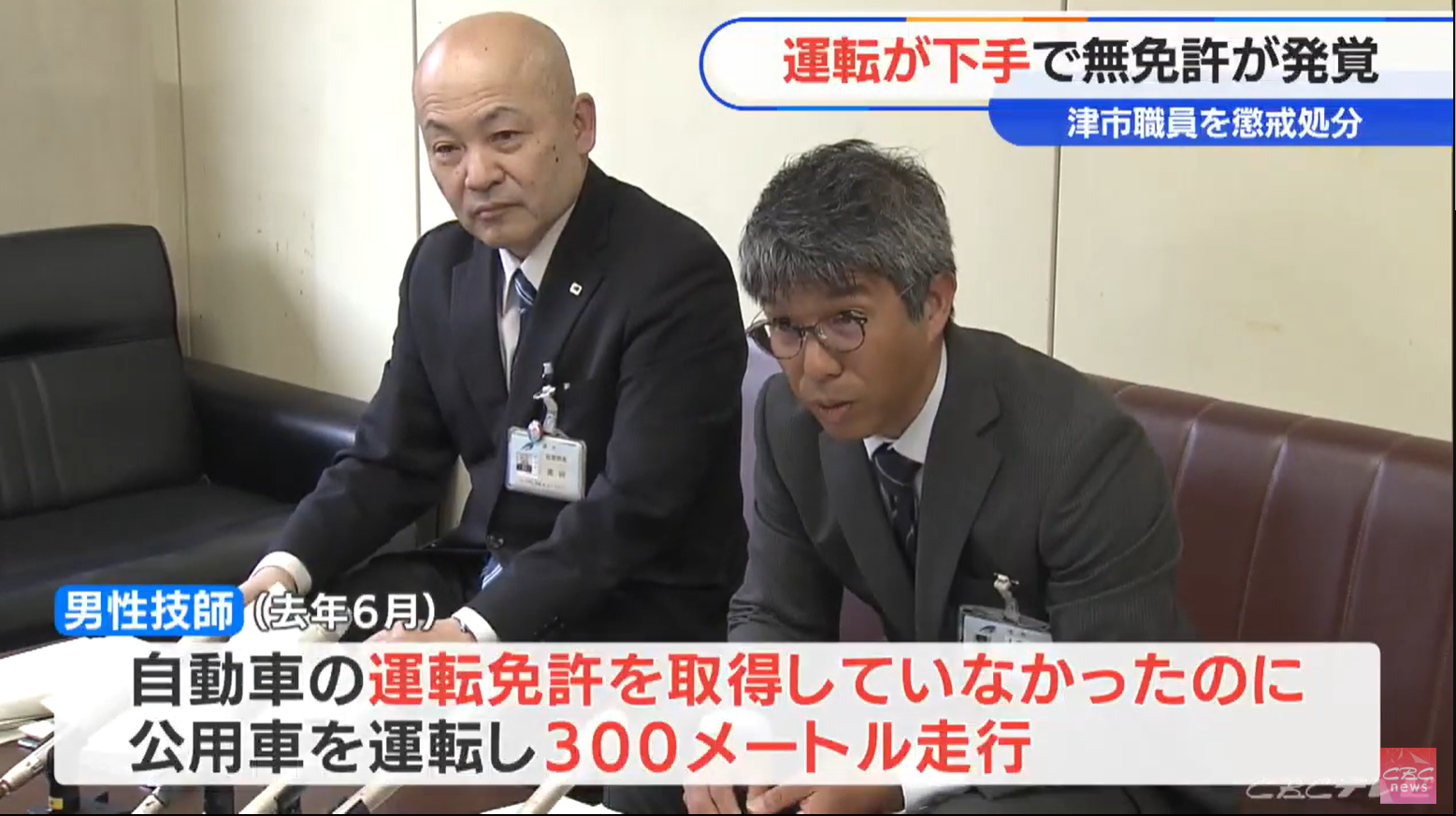 運転が下手すぎて発覚 無免許で公用車を運転した市職員(25)を減給処分 運転した際に「アクセルとブレーキはどっちでしたっけ?」#CBC #チャントhttps://t.co/onlJjJzvJz
