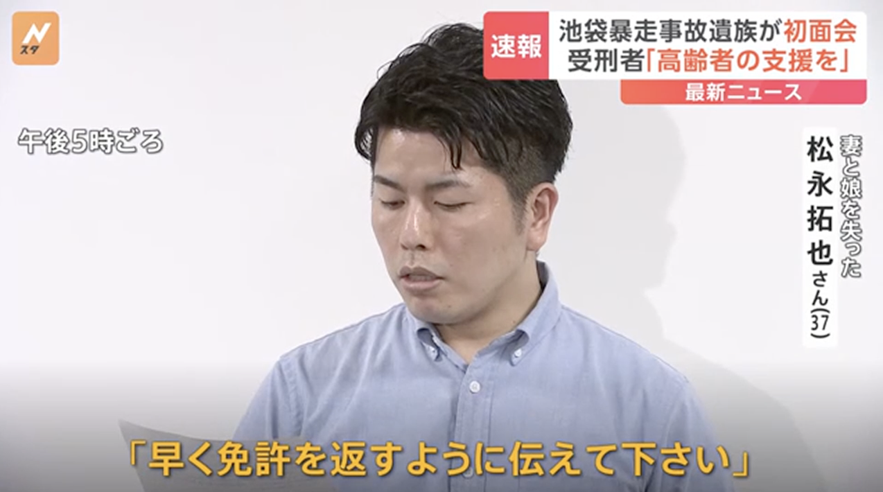 池袋暴走事故の遺族が、事故を起こした受刑者と初めて面会しました。受刑者は「高齢ドライバーの方々を支援してほしい」と話したということです。