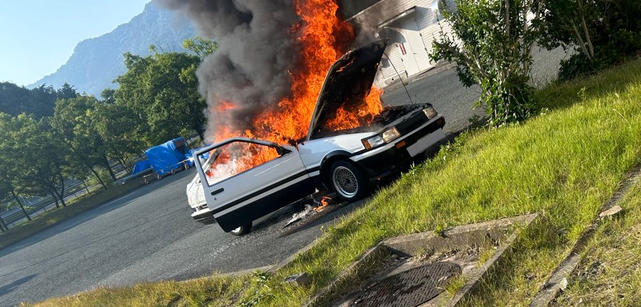 【悲報】納車したばかりの『AE86』、燃える。